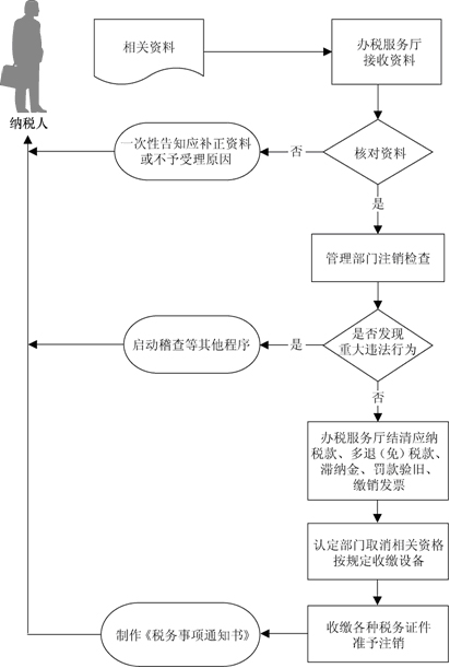 。6)收繳稅務(wù)登記證件、《發(fā)票領(lǐng)用簿》和其他稅務(wù)證件,即時(shí)核準(zhǔn)注銷稅務(wù)登記,制作《稅務(wù)事項(xiàng)通知書(shū)》交納稅人。